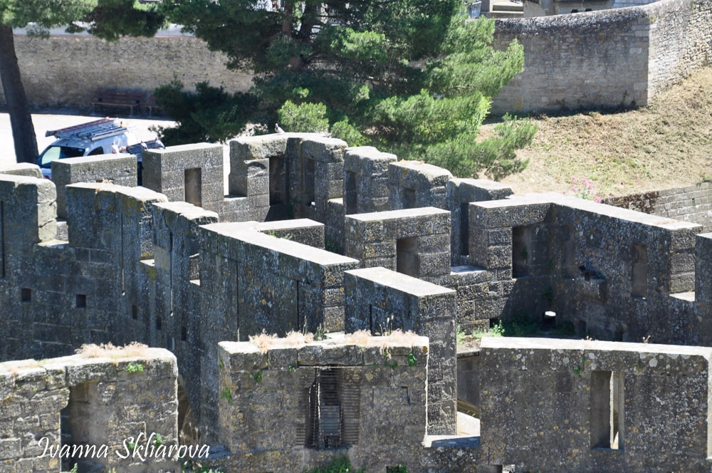 По периметру його оточували вежі: кутова Сен-Поль на півдні, дві вежі біля східних воріт, Казармова вежа і кутова Комендантська вежа, що захищала його північну частину. Уздовж веж були побудовані обхідні дерев'яні галереї з виступами для навісних бійниць. Пізніше частково їх відновили і сьогодні по них можна навіть пройти і подивитися, як вони були влаштовані в ті далекі роки.