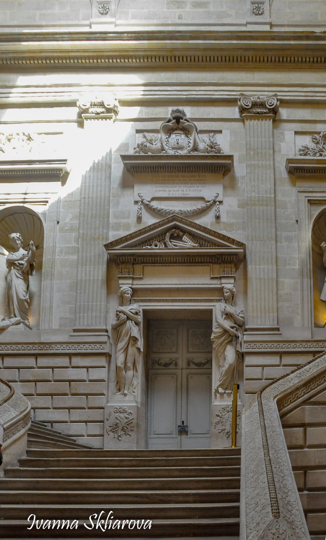 Даний театр в стилі неокласицизму спроектував Віктор Луї в кінці ХVIII століття. Він відкрився в 1780 році і з тих пір є центром мистецького життя Бордо. У 1991 році відновили інтер'єр театру, дотримуючись його оригінальних кольорів - блакитного і золотого. Красивий портик театру прикрашений 12 статуями: 9 муз і три богині - Юнона, Венера і Мінерва. Незвичний дизайн, який дозволив будівлі зайняти своє місце в історії французької архітектури, пов'язаний з тим фактом, що будівля будувалася в період, коли театр, як тип будівлі, тільки розроблявся. Вольтер та інші автори десятиліттями скаржилися на те, що в Парижі немає театру або будівлі, гідного для їхніх постановок. У 1770-х роках було прийняти рішення виправити цю ситуацію. Третій герцог Рішельє, одна з найважливіших фігур в королівстві, вирішив побудувати театр в Бордо, столиці регіону, де він був губернатором. Яким би великими не були архітектурні якості театру в Парижі, театр Віктора Луї мав найбільший вплив на національному та міжнародному рівні. Театр Луї в Бордо, побудований в період 1972-1780 років, знаменує народження театру, як міської пам'ятки. Цей театр також мав багато нововведень в дизайні, плануванні та робочих функціях. З архітектурної точки зору, він відображає майстерність Луї в області традиційного французького дизайну, а також глибоке розуміння функції будівлі та прекрасні знання в області ремісничих мистецтв, які він отримав від свого батька муляра.