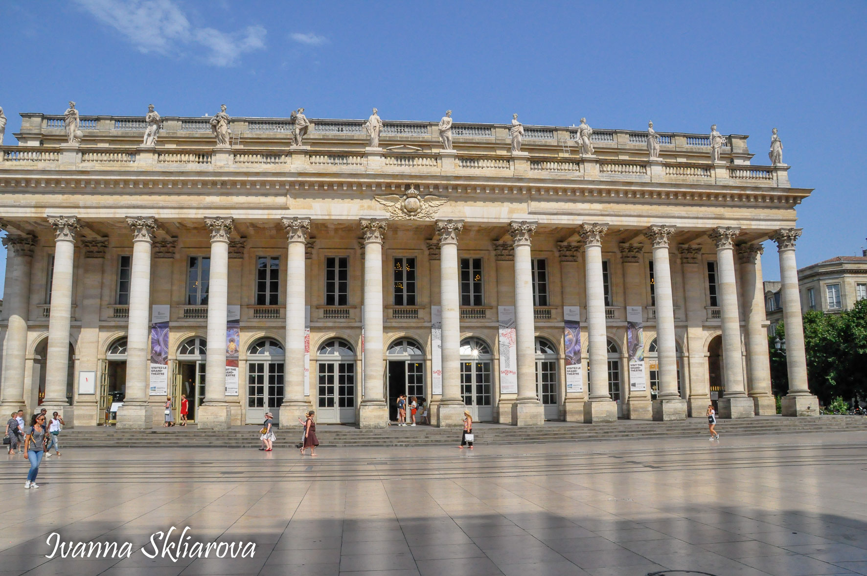 Ле Гранд (великий) театр — шедевр класицизму, завершений в 1780 році. Будівля театру є одним з найбільш символічних в Бордо, її побудовано на місці стародавнього римського Форуму. Архітектором є Віктор Луї, який також спроектував Palais Royal і Théâtre Français в Парижі. Однією з цікавих особливостей Ле Гранд театру є 12 колосальних коринфських колон і статуї дев’яти муз і богинь.