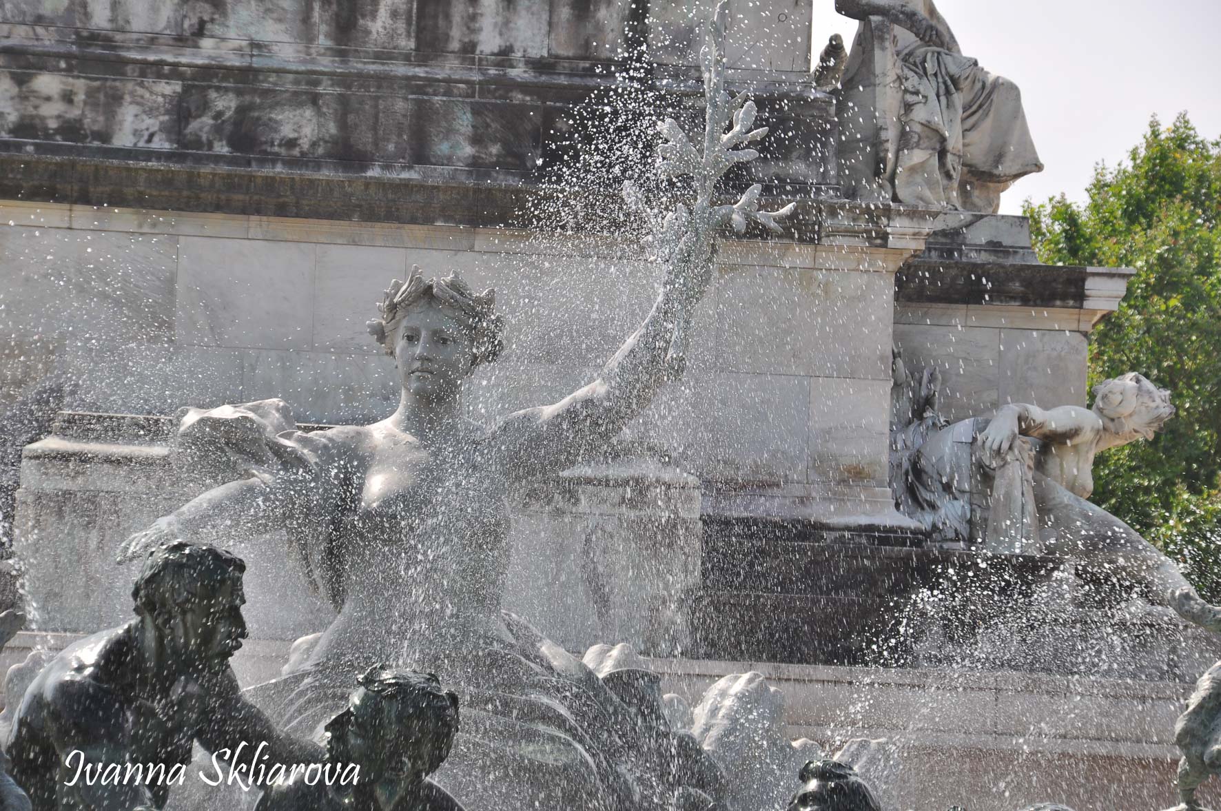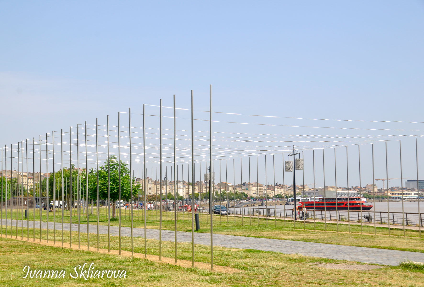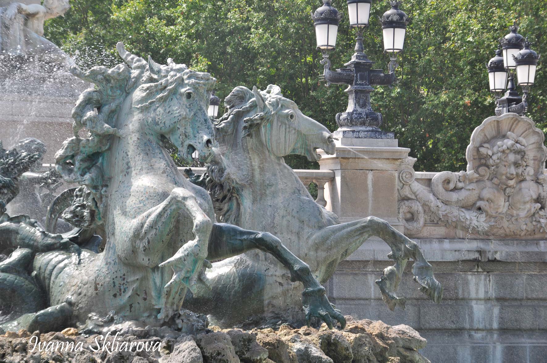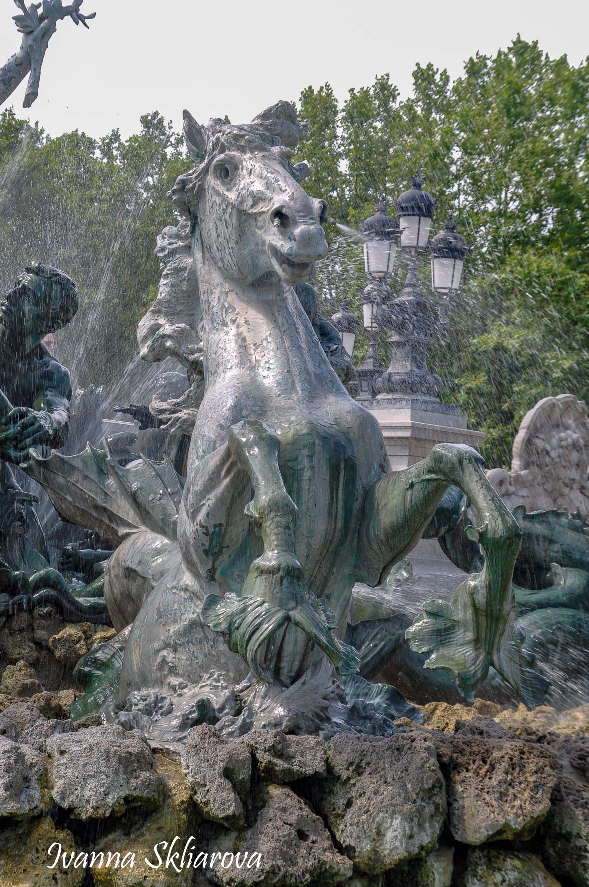 Площа de la Bourse (біржі) – один із символів Бордо. Це місце відігравало важливу роль у розвитку міста і торгівлі. Площа має красиву класичну архітектуру 18 століття. Фонтан трьох грацій знаходиться у центрі, який оточений старою фондовою біржею і музеєм митниці. З кінця липня 2006 року в Бордо з'явилося найбільше дзеркало води в світі (3450 м2). Воно виходить на площу Бурс, між набережною де-ла-Douane і набережної Людовіка XVIII, там розташований басейн, який змінює водяне дзеркало на туман. Феєрія фонтанів, створених Жаном-Максом Ллорка - це водяне дзеркало займає центральне місце і бездоганно вписується в старовинний пейзаж середньовічної площі. Басейн працює щодня з 10:00 до 22:00, а працює він за таким циклом: 3 хв. наповнюється водою, 15 хвилин відображається дзеркальна поверхня, 5-3 хв. напускається туман. Система паризького дизайнера Жана-Люка Лорка, дозволяє показувати один за іншим дзеркала (з 2 дюйма стоячої води на плиті з граніту), а також ефект туману до 2 метрів. Вода знаходиться під землею, в баку об'ємом 800 м3. Вона підіймається на поверхню за допомогою насосів, заповнює 100 ємкостей під плитою і виходить через стики по всій поверхні. Запрограмована комп'ютером, система електромагнітних клапанів дозволяє воді спуститися в резервуар, щоб знову набути потрібної температури. Вона може перетворюватись в газ і робити ефект туману з 900 сопел, які розташовані в центрі кожної плити.