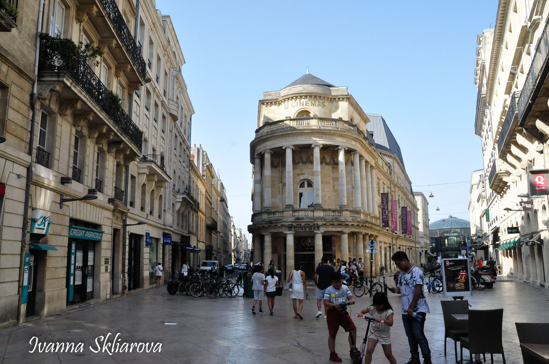 Esplanade des Quinconces – одна з найбільших площ Європи. Розташована в самому центрі Бордо недалеко від Ле Гранд театру. На площі знаходиться монументальний фонтан початку 19 століття, зруйнований в ході Другої світової війни. На південь знаходиться вулиця Сент-Катрін — найжвавіший торговельний простір міста. Також вона є найдавніший з теперішніх вулиць Бордо.