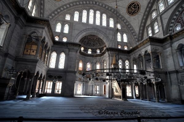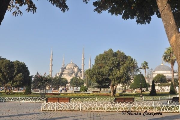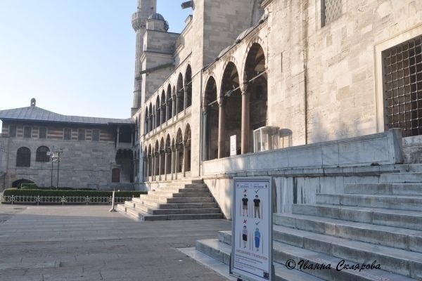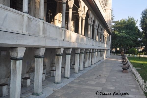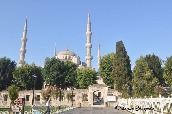 «Голуба мечеть - Блакитна мечеть або Мечеть Султанахмет — перша за розміром і одна з найкрасивіших мечетей Стамбула. Мечеть нараховує шість мінаретів: чотири, як зазвичай, по боках, а два трохи менш високих — на зовнішніх кутах. Вона вважається одним з найвидатніших шедеврів ісламської та світової архітектури. Мечеть розташована на березі Мармурового моря в історичному центрі Стамбула в районі Султанахмет навпроти мечеті Айя Софія. Мечеть є одним з символів міста…». Ось так пише про неї розумний сайт Вікіпедія, але від себе хочеться додати, що Голуба мечеть - це не просто одна з 3 тисяч мечетей Стамбула, а по своєму особлива, можливо ажіотажем туристів навколо неї, можливо намоленим місцем мусульман, можливо своєю величчю та неймовірними мозаїками, але мене вона вразила своєю щирістю та відвертістю, адже її я побачила ще без туристів та неймовірних черг, побачила очима самих жителів Стамбула, коли туристи вже поїхали, а у ній можна просто помолитись.