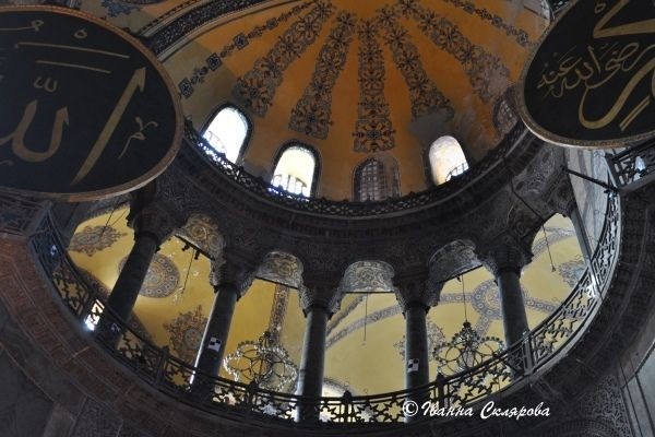 І ось першим місцем, у яке я потрапила, була Айя Софія. Колись церква, а зараз мечеть, ще з входу дивує своєю величністю та помпезністю, напевне найкраще, що я бачила у своєму житті. Читаючи багато про неї у підручниках історії та довідниках, я не могла уявити що побачене виявиться у тисячу разів краще. Найбільше мене вразив вигляд з другого поверху, коли люди, що стоять унизу, здаються просто мурахами, які маленькими натовпами бігають від одного номеру їх аудіоекскурсії до іншого.