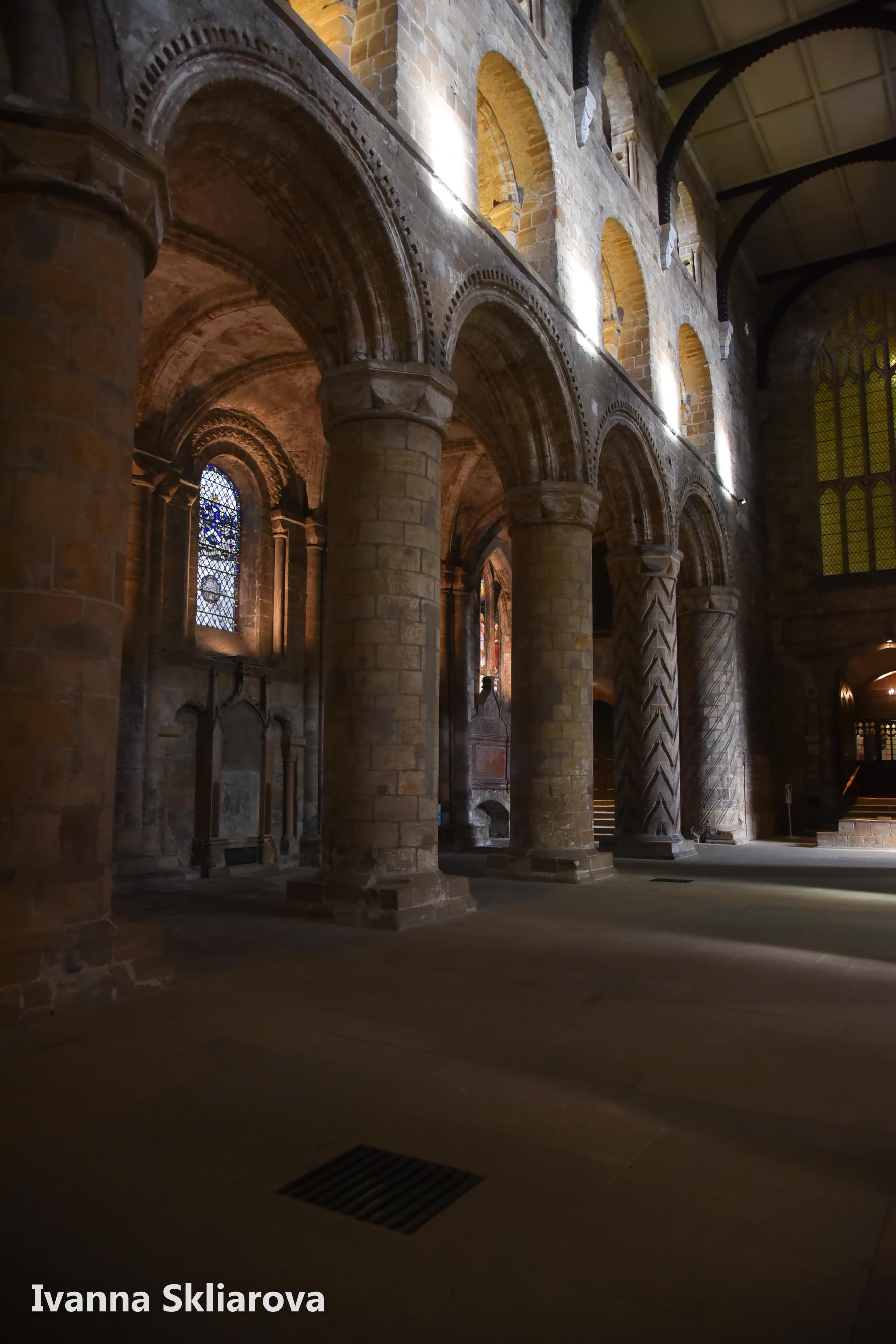 Колишній неф абатської церкви, зведеної Давидом I над оригінальною церквою, заснованою його матір’ю, королевою Маргарет. Стара церква є єдиним значним залишком абатства 1147 року та є чудовим зразком романської архітектури з величезними округлими колонами, дві з яких висічені вражаючими зигзагоподібними візерунками.