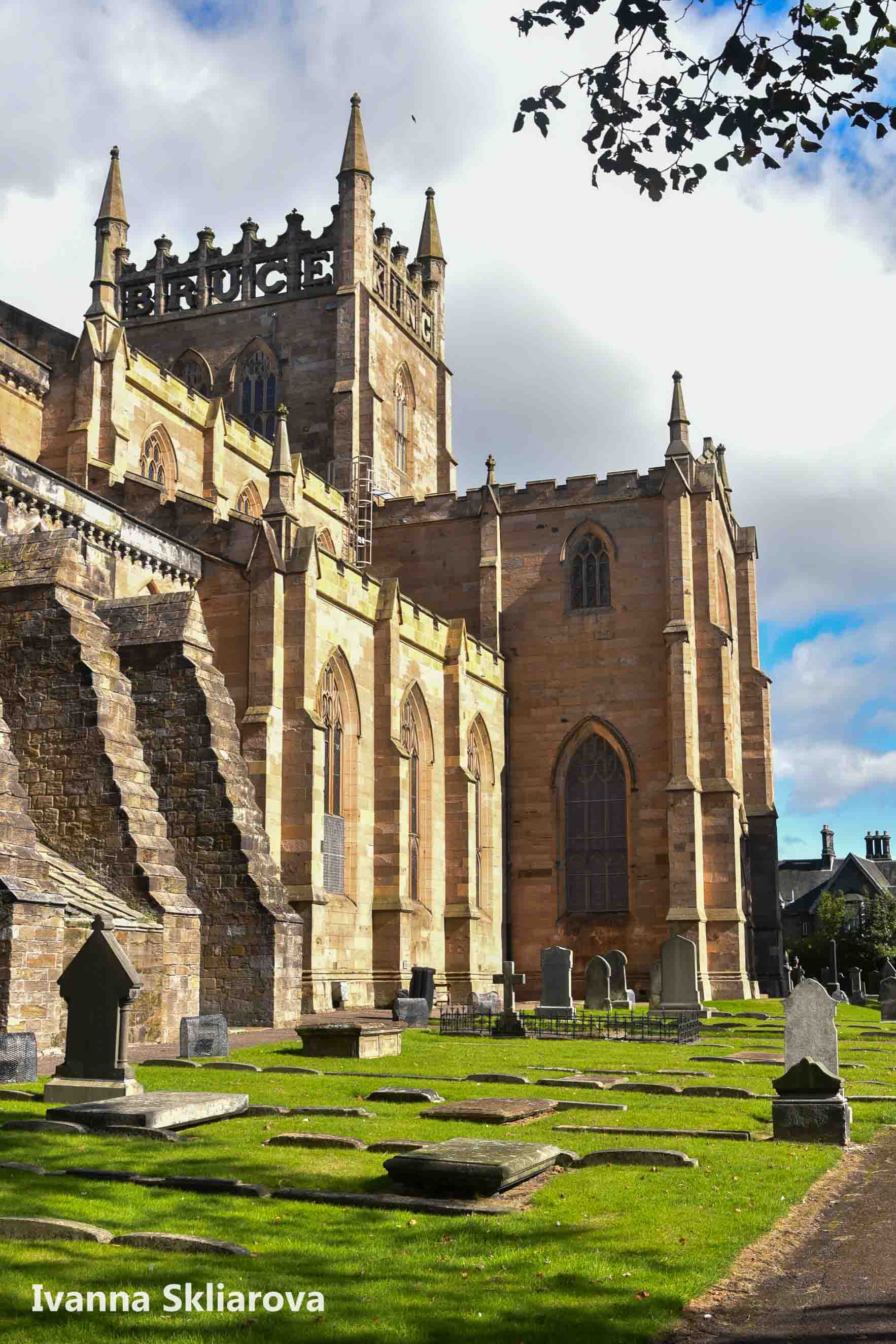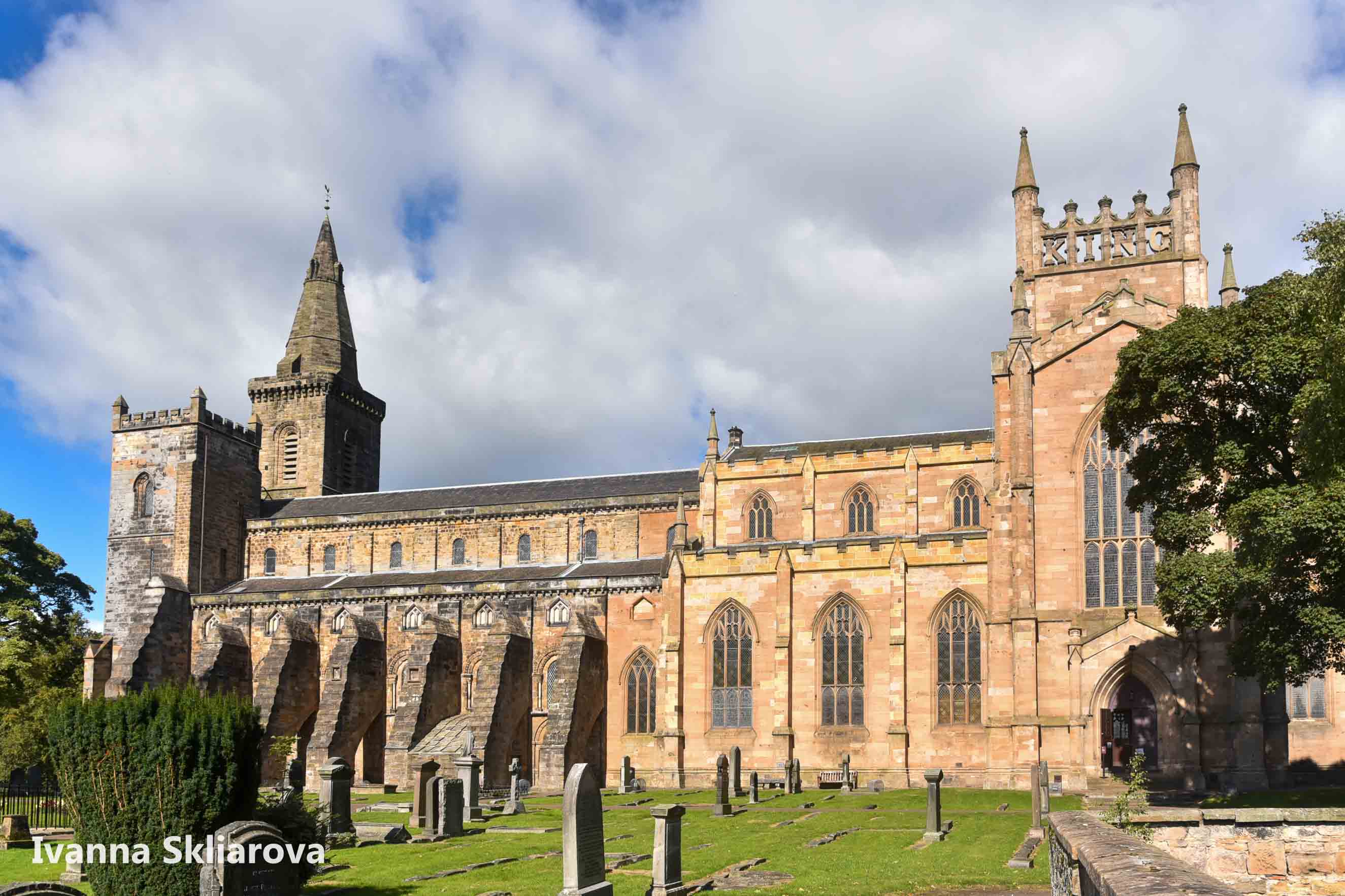 У 1303 році англійські війська під командуванням Едуарда I зайняли абатство і перезимували тут. Хоча англійці залишили церкву недоторканою, коли вони пішли навесні, вони зруйнували внутрішні будівлі абатства. За сприяння Роберта Брюса абатство було відбудовано, а сам король Роберт був похований тут. Його могила лежить під кафедрою, покрита меморіальною міддю. Напис Брюсу висічено на вершині вежі, а зліпок голови Брюса знаходиться в скляній вітрині в святині.