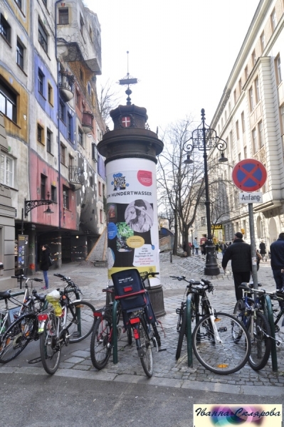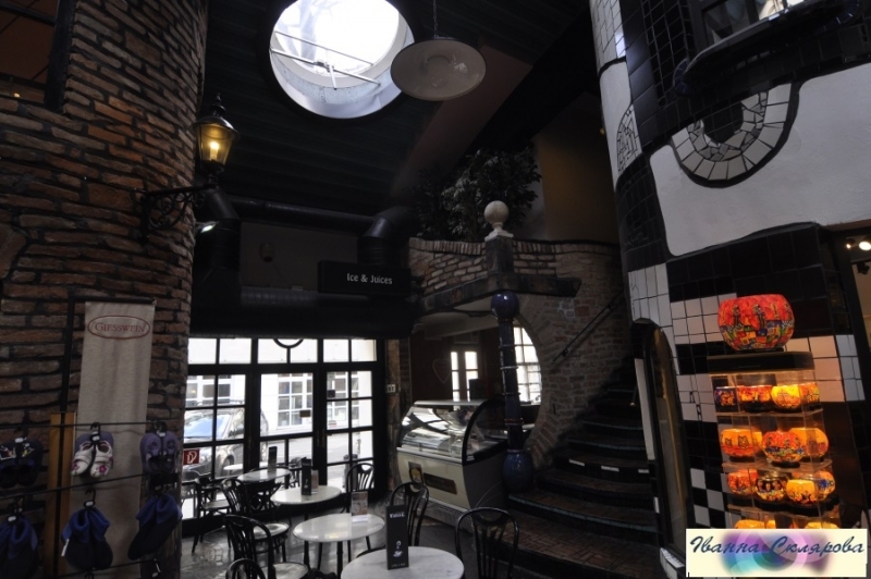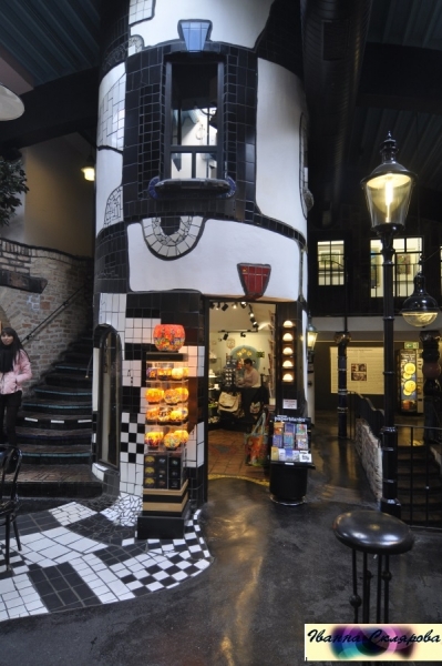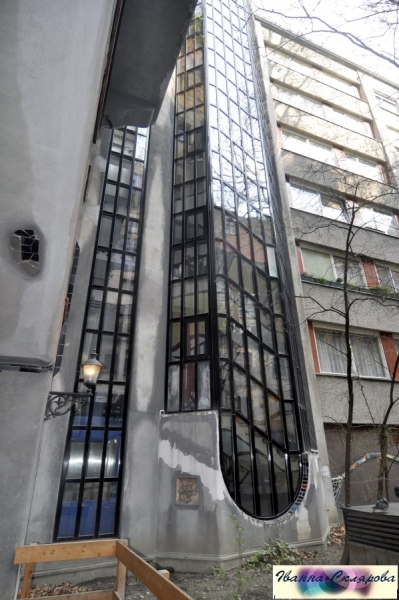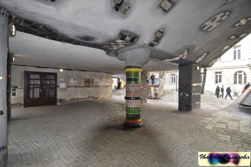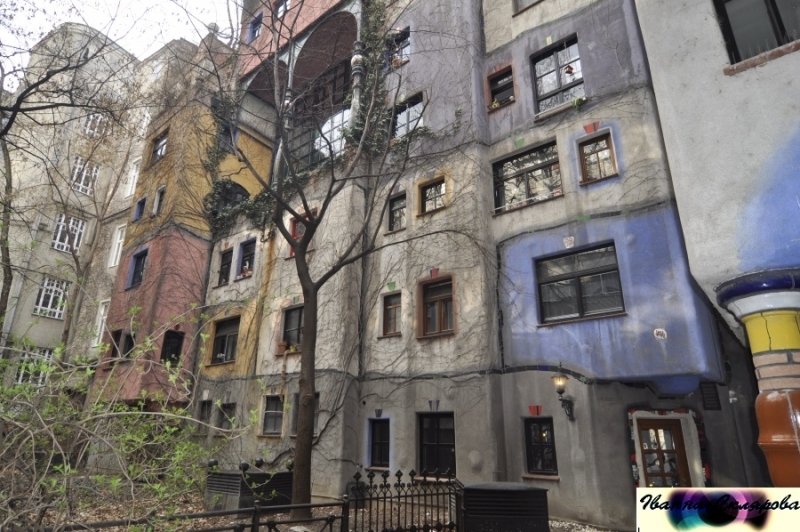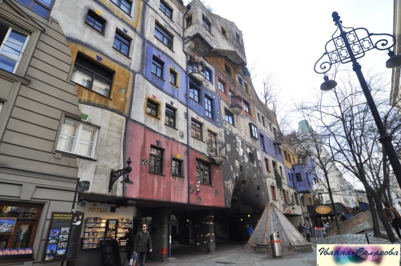 Будинок Хундертвассера, побудований в середині 80-х рр. ХХ ст. Насамперед він привертає увагу барвистим фасадом, який гармонійно поєднується з пишним рослинним світом на ньому, включаючи й дерева. Вікна тут різних форм. Поверхні підлог та стін не є рівними, штукатурка нагадує піщані дюни. Всі кути в будинку заокруглені – підвіконня, одвірки. Виникає асоціативний ряд – лісові стежини, пагорби, морські хвилі і навіть гроти. Архітектор використовував для будівництва лише природні матеріали, адже був завзятим ідейним екологом. Хундертвассер вважав цей витвір будинком своєї душі і вершиною своєї архітектурної діяльності.