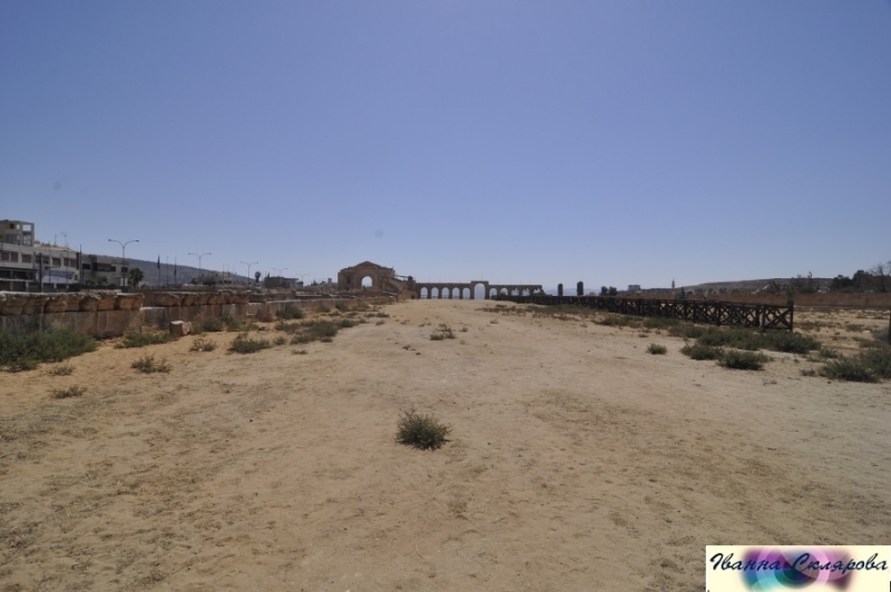 Наближаючись до кінця кардо, справа є руїни мечеті Омейядів, за якими розташовані Західні лазні, прикрашені прекрасним куполом. Звернувши наліво на Північному тетрапілоні, що лежить на чотирьох арках, можна дійти до Північного театру.